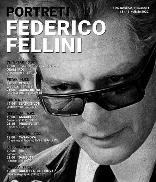 – Sa zadovoljstvom najavljujemo retrospektivu talijanskog redatelja Federica Fellinija, koja će se povodom stote godišnjice njegova rođenja održati u kinu Tuškanac od četvrtka, 13. veljače do srijede, 19. veljače – poručuju organizatori.