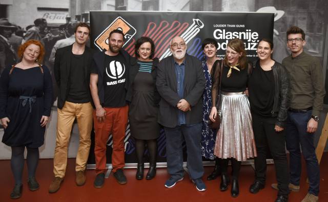 Sinoć je u kinu Europa održana svečana premijera dokumentarnog filma ‘Glasnije od oružja‘. Film su predstavili članovi filmske ekipe predvođeni redateljem Miroslavom Sikavicom i producentom Nenadom Puhovskim, ali i brojne osobe s hrvatske glazbene i umjetničke scene koje se pojavljuju u filmu: Zrinko Tutić, Vladimir Kočiš Zec, Aleksandra Kulier, Anja Šovagović Despot, Ksenija Urličić, Hrvoje Hegedušić i drugi.