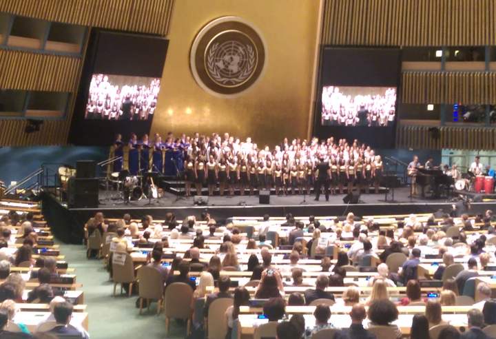 Komorni zbor ‘Ivan Filipović‘ gostovao je na festivalu pjevačkih zborova u New Yorku, ‘The Rhythms of One World’ International Choral Festival, a koji je organiziran u povodu obilježavanja 70. obljetnice potpisivanja Povelje o osnivanju Ujedinjenih naroda. Riječ je o festivalu kojim se tijekom tjedan dana, brojnim koncertima, slavio osnivački dokument te institucije potpisan 26. lipnja 1945. u San Franciscu. Upravo je na samu obljetnicu potpisivanja u Općoj skupštini UN-a u New Yorku održana i ceremonija otvaranja Festivala na kojoj je nastupio i Komorni zbor ‘Ivan Filipović’. Pred više od tisuću uzvanika Zbor je pjevao skladbe hrvatskih autora – Emila Cossetta, Mate Lešćana, Joška Ćalete i Borisa Papandopula. Cilj je ovog Festivala, na kojem su nastupili i zborovi iz Rumunjske, umjetnici iz Kine, Amerike kao i UNRocks Music Group, promocija interkulturanog razumijevanja i globalne suradnje kroz univerzalni jezik – glazbu.