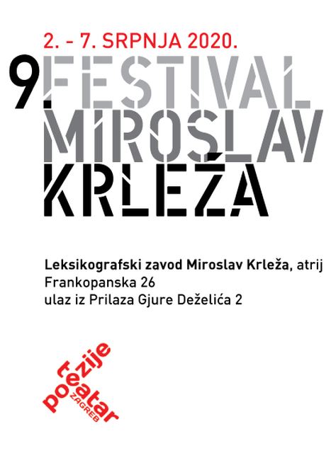 Otvaranje 9. festivala Miroslav Krleža na rasporedu je u četvrtak 2. srpnja 2020. u 21.00 u Leksikografskom zavodu Miroslav Krleža, Frankopanska 26 (ulaz iz Prilaza Gjure Deželića 2).