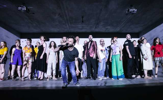 Autorski tim uz Sebastijana Horvata i Milana Markovića Matthisa čine Igor Vasiljev koji potpisuje scenografiju i video, kostimografkinja je Belinda Radulović, autorica glazbe Karmina Šilec, suradnica za pokret Ivana Kalc, oblikovatelj svjetla Aleksandar Čavlek, a oblikovatelj tona Saša Predovan. U podjeli su glumci riječke Hrvatske drame Olivera Baljak, Jelena Lopatić, Tanja Smoje, Marija Tadić, Aleksandar Cvjetković, Edi Ćelić, Dean Krivačić, Jasmin Mekić, Nikola Nedić, član Talijanske drame riječkog HNK Giuseppe Nicodemo, a velike uloge Michelangela u prvom činu predstave te Redatelja u drugom činu pripale su Rakanu Rushaidatu (Zagrebačko kazalište mladih) te Jerku Marčiću (Kazalište Kerempuh). U predstavi sudjeluje i Kor fanatika koji čine dubrovački zboristi: Lovro Barišić, Magdalena Kačić Barišić, Jelena Beželj, Mario Bogdanović, Mislav Ćimić, Barbara Horvat, Antun Končić, Barbara Ogresta, Lukrecija Prcela, Dea Qivlaku, Ljubo Radić, Tanja Šimunović, Ivana Tasovac, Antonio Težak, Slobodan Varezić i Petar Vlašić, a vodi ih Maja Marušić.