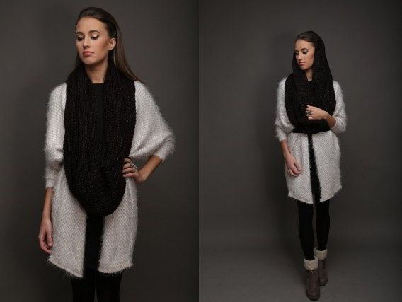 Za hladnije dane i šetnju gradom dodajte šal krupne strukture pletiva u crnoj boji sa lame nitima, i tople čizme.
