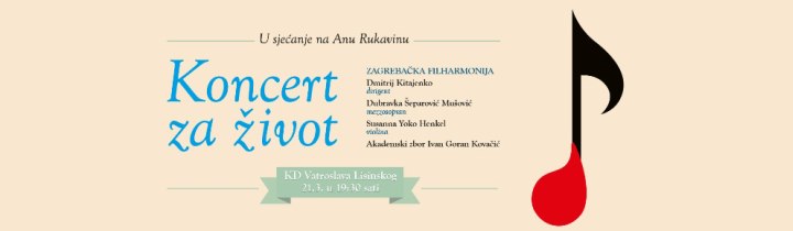 Tradicionalni Koncert za život, u organizaciji Zagrebačke filharmonije za Zakladu Ana Rukavina, održat će se u subotu, 21. ožujka 2015. godine s početkom u 19,30 sati u Koncertnoj dvorani Vatroslava Lisinskog.