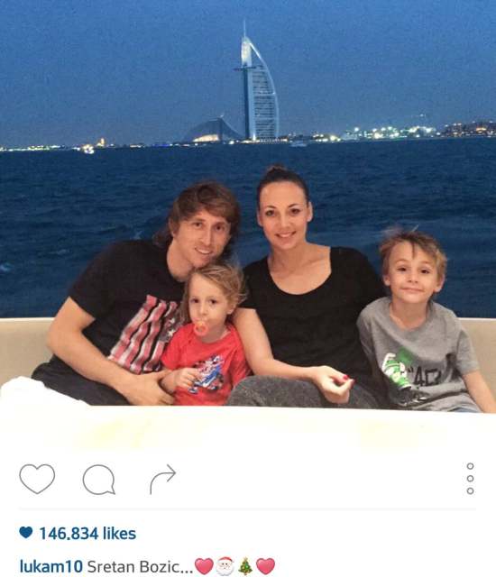 pauzi sezone, Hrvatski nogometni reprezentativac Luka Modrić objavio je na društvenoj mreži blagdansku čestitku svim svojim prijateljima i obožavateljima. Luka sa svojom obitelji: suprugom Vanjom, petogodišnjim sinom Ivanom i dvogodišnjom Emom ove obiteljske blagdane provodi u toplom Dubaiju.
