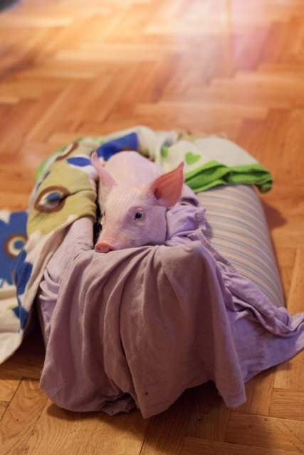 Život joj je počeo slično kao i svim ostalim pripadnicima njezine vrste. Zbog bolesti, odbačena je u kanal, a osječka Udruga Pobjede pobrinula se da malena Ljilja uspješno prebrodi dvije operacije i da uživa u svakodnevnoj skrbi volontera. Tako je osječki azil za nezbrinute pse, nakon svinje Arčija koji je umro prošle godine, ponovno među napuštene pse doveo svinju. Takav spoj ne čudi s obzirom na činjenicu da su psi i svinje ne samo izrazito slični po inteligenciji, higijenskim navikama, sklonosti maženju i razigranosti nego se odlično slažu i međusobno i s ljudima.