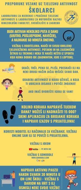 – Tjelesna aktivnost, osim na tjelesno zdravlje ima i velik utjecaj na rad mozga. Roditelji bi trebali potaknuti djecu na kratke tjelesno aktivne pauze tijekom dugotrajnog perioda neaktivnosti. Nekoliko minuta tjelovježbe nakon pola sata online škole pomoći će učenicima lakše pratiti nastavu, produžiti vrijeme usredotočenosti na zadatke i tako pomoći učenicima svladati gradivo – zaključuje dr. sc. Hrvoje Podnar.