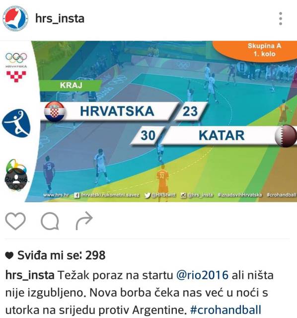 – Težak poraz na startu, ali ništa nije izgubljeno. Nova borba čeka nas već u noći s utorka na srijedu protiv Argentine – napisali su na društvenim stranicama Hrvatskog rukometnog saveza nakon poraza u prvom kolu na OI.