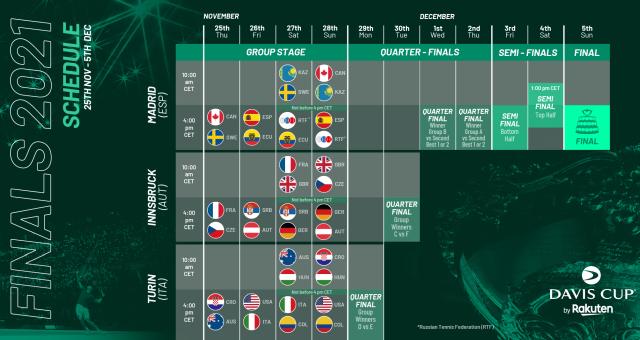 Jučer, 27. svibnja 2021. godine, u 15.00 sati počela je prodaja ulaznica za sve skupine završnice Davis Cupa koji je na rasporedu od 25. studenoga do 5. prosinca. Ulaznice se mogu kupiti na www.daviscupfinals.com/ticketing , a tijekom prva 72 sata prodaje odobrava se popust od 20%.
