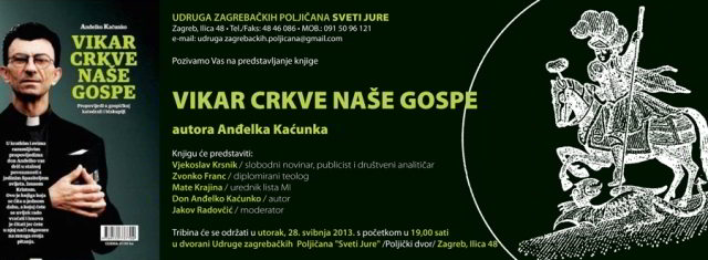 Iz tiska je izašla knjiga don Anđelka Kaćunka ‘Vikar Crkve Naše Gospe’. Knjiga je zapravo zbirka propovijedi u gospićkoj biskupiji i katedrali. Don Anđelko Kaćunko za Scenu je ispričao kako je i zašto nastala knjiga. Kazao nam je da za propovjedaonicom nastoji u jednoj ruci ‘držati’ Bibliju, a u drugoj novine ili internet.